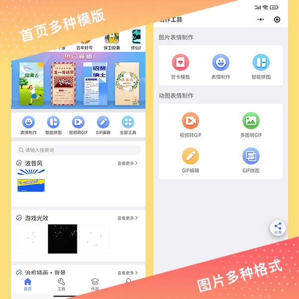 Photoshopped all have to pay? Come here to see thousands of templates, motion effects and backgrounds to choose from. You need posters, illustrations, H5 and all kinds of small decorations can be found here, One-Click Download, no more headaches for public accounts production, and the production of greeting cards, intelligent puzzles, making dynamic expressions and other functions, the mini program meets all your needs.